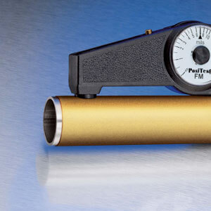 PosiTest magnetic pull-off thickness gage (banana gauge) for the non-destructive measurement of non-magnetic coatings (paint, enamel, galvanizing, metalizing, plating, etc.) on steel.