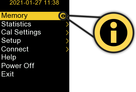 NEW On-gage help explains menu items at the touch of a button