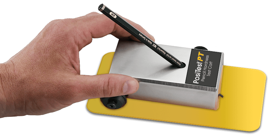 Determines the film hardness by pencil test (Wolff-Wilborn) in accordance with ISO 15184 and ASTM D3363
